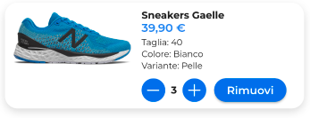 Questa variante mostra una card complessa con vari widget legati ad una funzionalità specifica di shop.